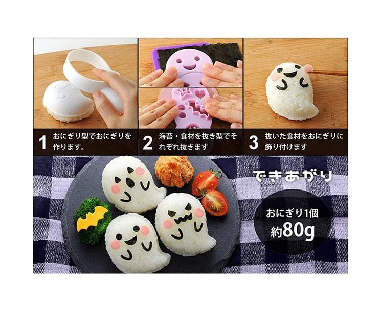 Make some ghost onigiri (traditional Japanese small balls or triangles of rice stuffed with a pickled or salted filling, typically wrapped in dried seaweed) with this onigiri mold. Includes molds to shape your rice and shape cutters for the extra features. Perfect for the Halloween season!