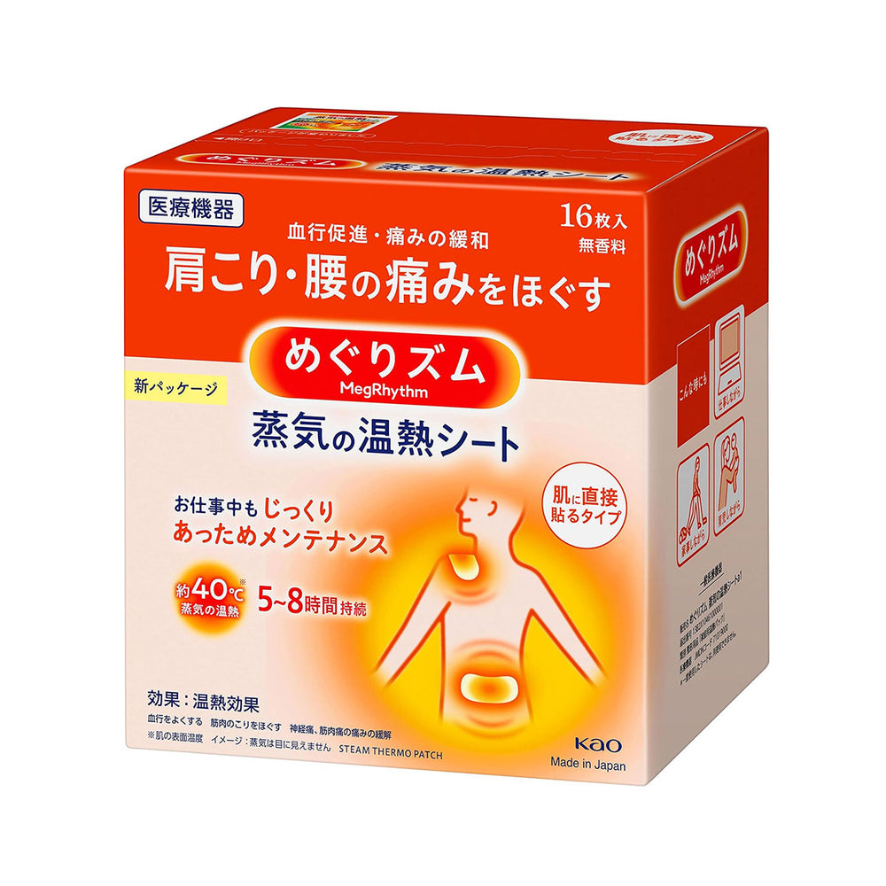 Ease stiff shoulders, achy backs, and tired muscles with these MegRhythm Warming Sheets. These sheets are meant to be adhered directly to the skin, providing a heating effect that can help prompt blood circulation and relieve stiffness and pain. Use these warming sheets on your back, stomach, shoulders, or neck for relief. Once applied, each sheet lasts about 5-8 hours. This pack includes 16 sheets, ensuring you have relief throughout the week. When the heating effect stops, be sure to remove the sheet right away to prevent chaffing.