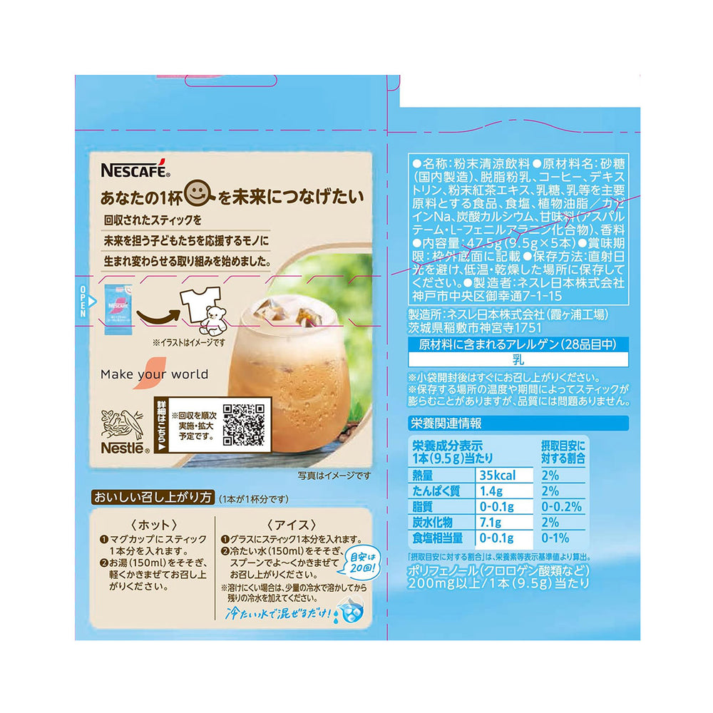 Enjoy coffee shop sips without leaving the house each time you use this Nescafe Whip Time Floral Milk Tea Latte mix. Each powder mix creates a delightful floral flavor and creamy foam consistency, just like a drink you'd find at your local coffee spot. This powder mix combines coffee and tea, offering a refreshing beverage that serves as a daily pick-me-up. Mix with water or milk, pour over ice, and enjoy!