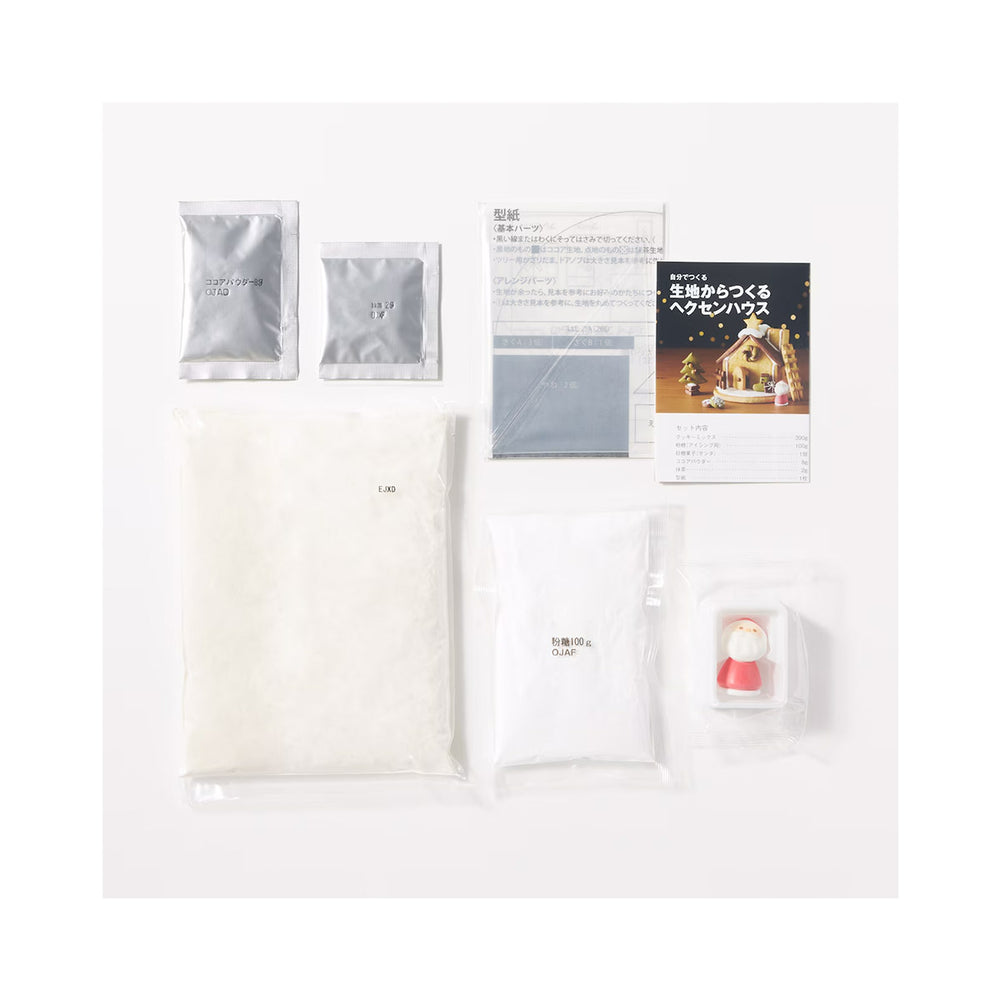 Challenge your inner baker with this Muji Holiday House Baking Kit! Not only does this kit allow you to build a gingerbread house, but it also includes mixes to bake the cookie pieces yourself. This kit features three cookie color options and flavors: original, matcha, or cocoa. In this kit, you'll find cookie mix, patterns, instructions, vanilla frosting, and an adorable Santa candy figure. Let your creativity out with this fun gingerbread house DIY kit!