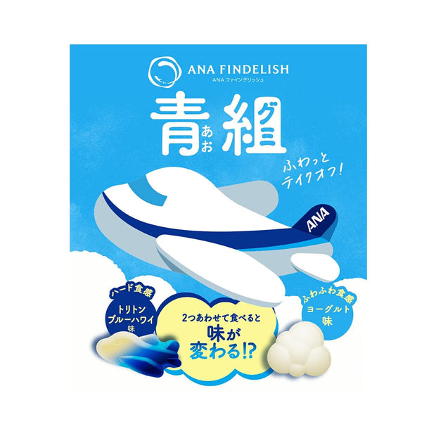 Take a trip into the sky with this pack of ANA Findelish Multi Flavor Gummy 2. This gummy candy is crafted by the ANA Catering Service, known for curating first-class airplane meals. Each pack includes two tasty flavors and textures: hard triton blue Hawaii and fluffy yogurt. Enjoy the gummies separately or together for a fun treat!