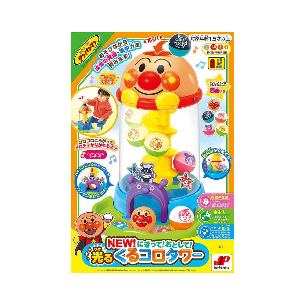 Entertain toddlers for hours with this vibrant Anpanman Nigitetsu! Glowing Kurukoro Tower! As they try to catch characters, they'll be developing motor skills and practicing restorative play. This game is ideal for a single player or multiple players. During play, it features chatting and music to help keep toddlers' attention. Add two AAA batteries (sold separately) to the tower, and watch the fun begin!