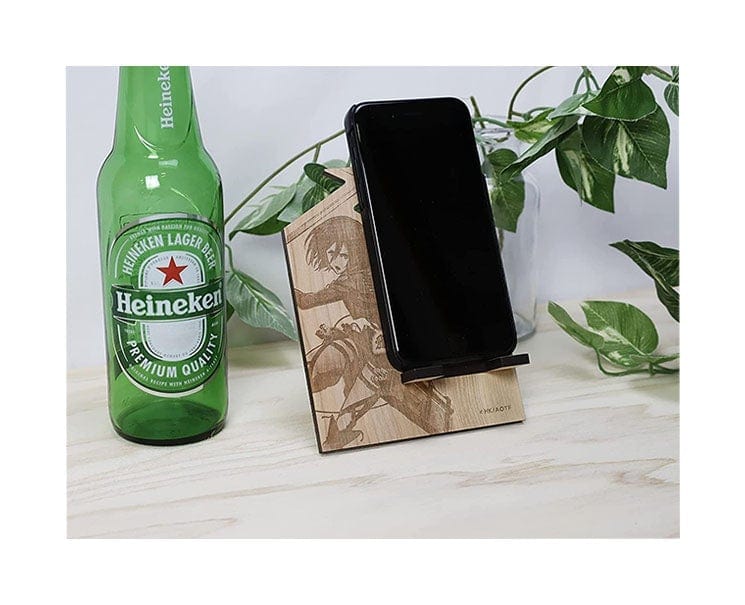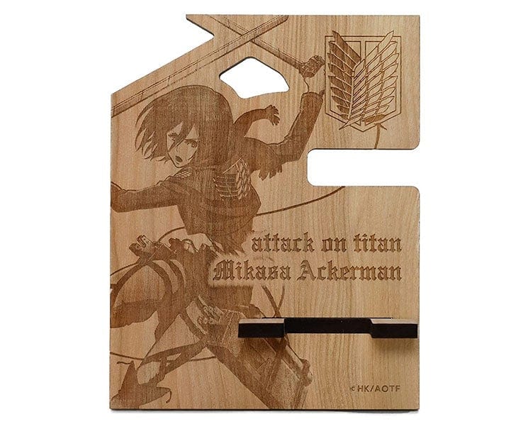 Grab this smartphone stand made out of wood and carved with an awesome Mikasa design! Perfect for your office.