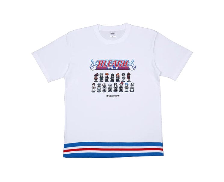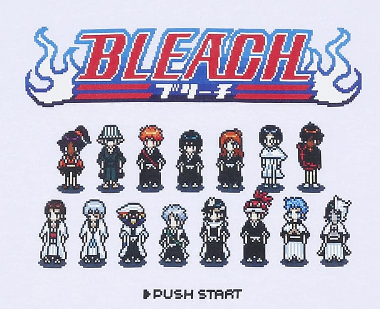 - Japan exclusive Shonan Jump shop original Bleach anime dot illustration design white T-shirt with famous characters from the popular 2000's anime.