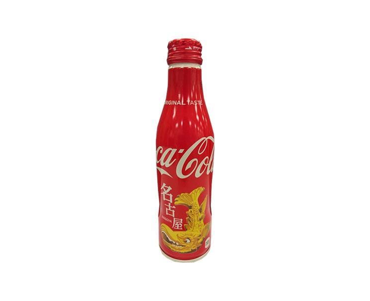 Coca Cola made this special edition bottle that represents the City of Nagoya! This golden dragon called shachihoko is an animal is Japanese folklore with the head of a tiger and the body of a carp. It was believed that this animal could cause the rain to fall, and as such, temples and castles were often adorned with roof ornaments crafted in the form of a shachihoko, in order to protect them from fire. The most famous one is found on the roof of the Nagoya Castle! This box contains 2 bottles of regular coca cola!