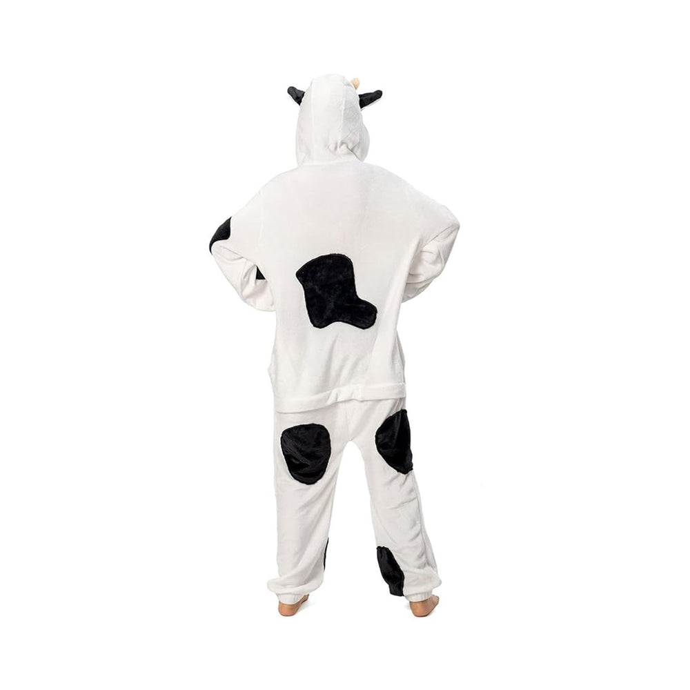 This adorable Dairy Cow Kigurumi costume doubles as a Halloween costume and lounge wear. Its soft, warm flannel material makes it ideal for cozy nights in. Wear it for trick-or-treating, Halloween parties, or just because. This onesie also includes convenient pockets, so you can bring your phone, wallet, and essentials with you.