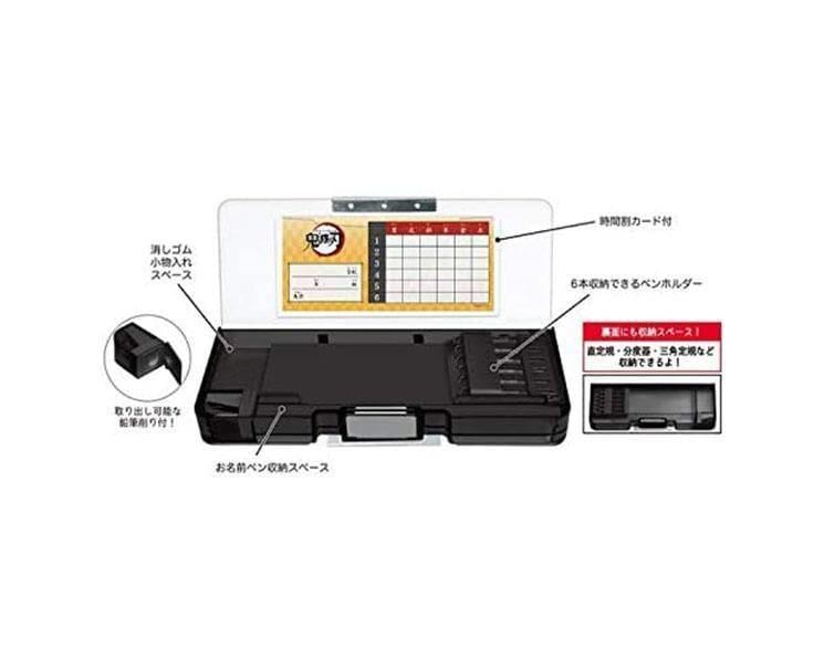 We have this awesome and convenient pencil case featuring a Demon Slayer theme. You can easily store your pencils, eraser and a pen on one side of the case and on the other side there is another storage area for other stationery products such as scissors and a ruler. Comes with a built in sharpener.