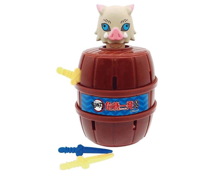 Today we bring you a mini version featuring Inosuke from Demon Slayer as the main protagonist. Take turns to slide your swords into the barrel, but be careful as one wrong move will send him flying. Whoever sends Inosuke flying will be out of the game.