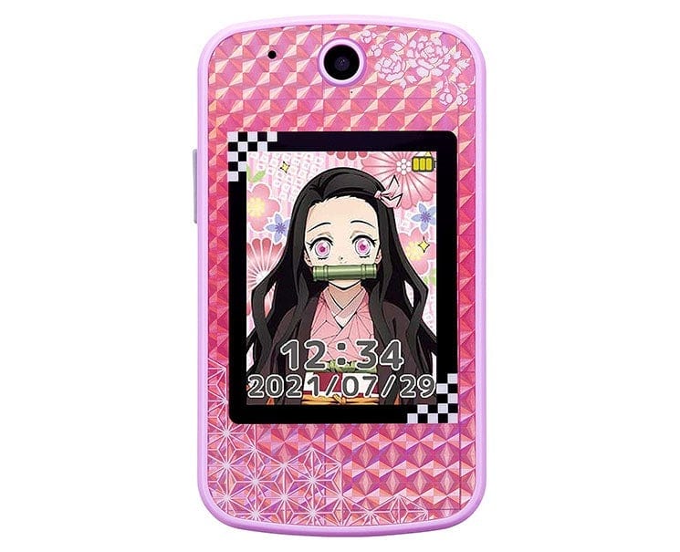 - You can take pictures with its front and rear-facing cameras. Comes with pre-installed backgrounds so you can take pictures with Demon Slayer’s characters.
