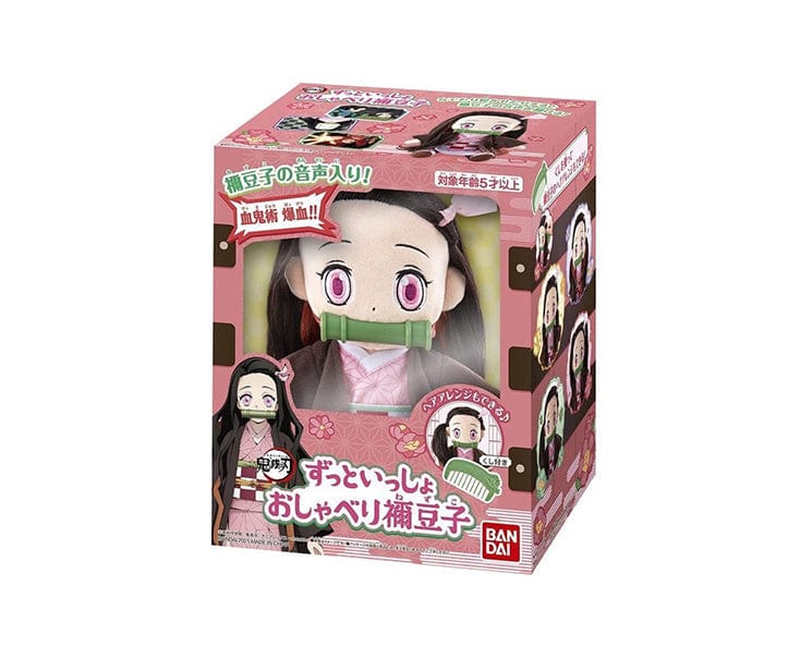 Demon Slayer Nezuko Kamado talking and chatting doll with adjustable hair and a cute voice! Activate Nezuko's demon power by shaking the doll, pat her head for a cute murmur, and more. Arrange the doll's hair into ponytails, braids, or pigtails with the included comb.