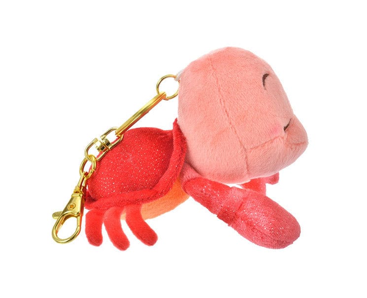 The Little Mermaid Sebastian Keychain from Disney Japan! This adorable plush keyholder features Sebastian in pastel colors, with a charming round shape and a sleepy face that is irresistibly cute. The sparkling red shell and scissors are made with shimmering materials, a luxurious and cute companion to have by your side anytime.