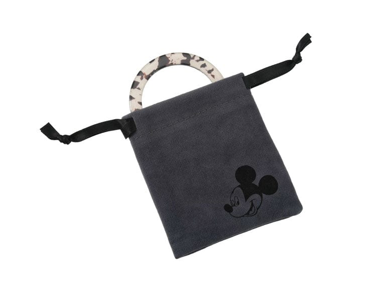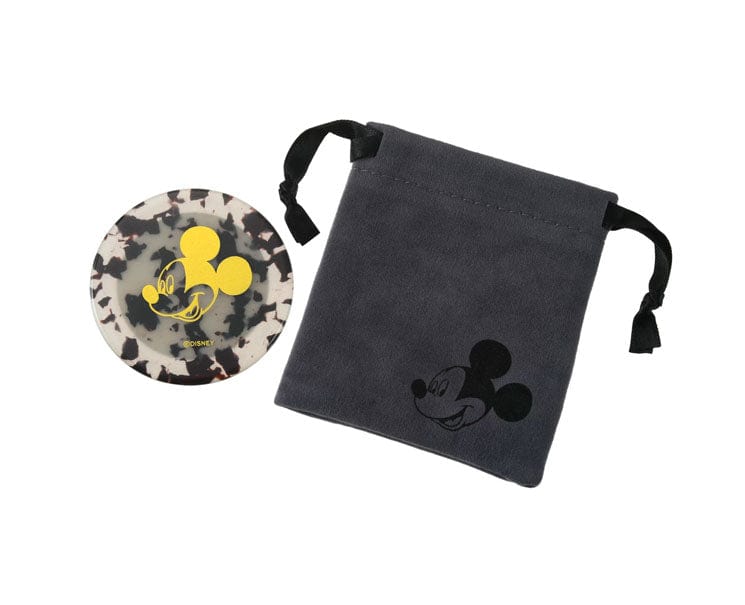• Disney Japan exclusive chic tortoiseshell round mirror and drawstring pouch featuring a Mickey Mouse design.