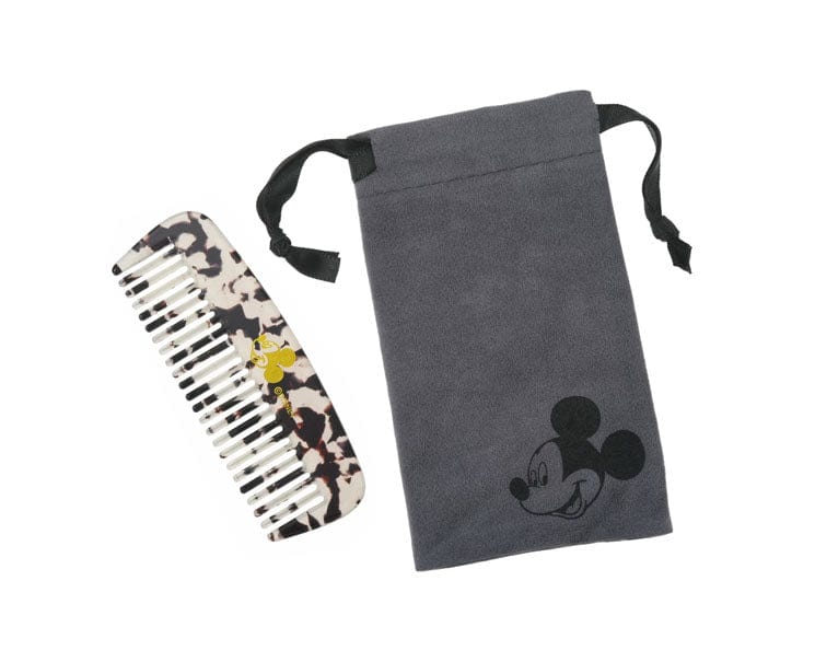 • Disney Japan exclusive chic tortoiseshell hair comb and drawstring pouch featuring a Mickey Mouse design.