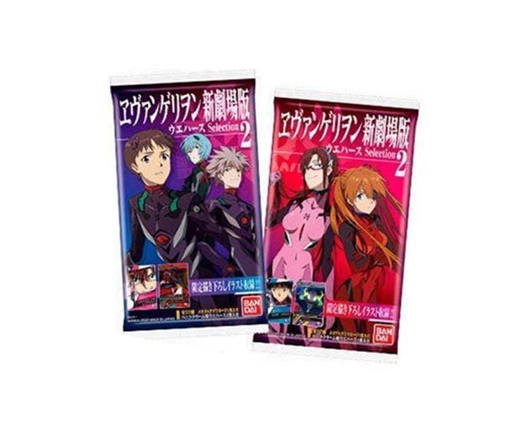 Evangelion is a Japanese anime that is very popular worldwide. This is a wafer snack which comes with one exclusive collectible card featuring characters from Evangelion. Get one out of 37 cards.