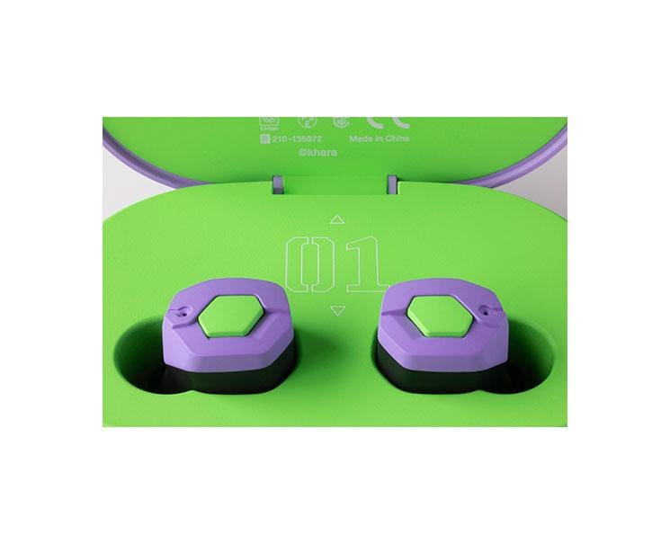 Tired of bland earplugs?! We got you! Don't miss these new and original earbuds with Evangelion motifs, featuring Unit - 01! Up to 9 hours of music playback on a single charge. Compatible with a wide range of models such as iPhone and Android, and easy pairing. Includes: charging case, earpiece and USB type C charging cable.