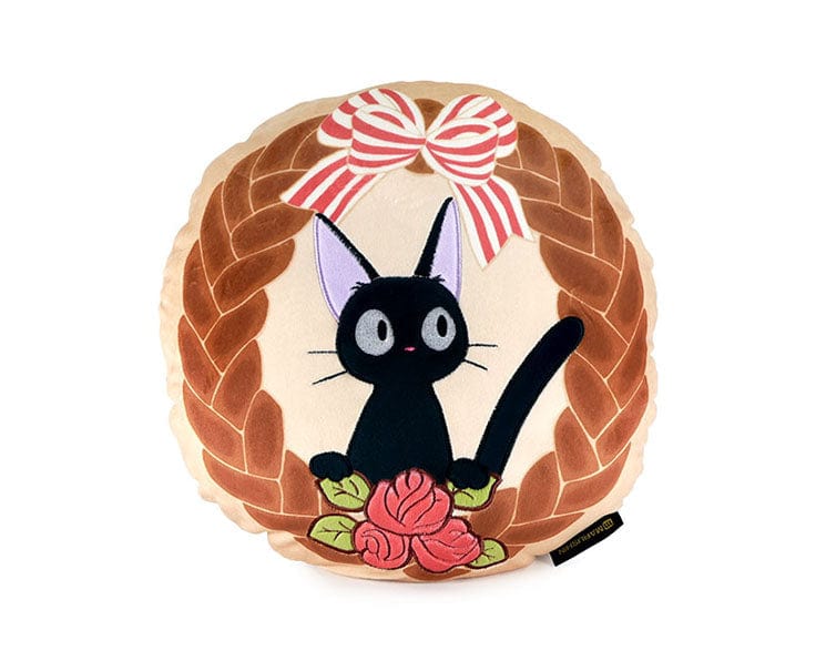 A Studio Ghibli Kiki's Delivery Service Jiji cushion replicates the bread wreath that is seen in the film and is just as soft and squishy as freshly baked bread! The back of cushion is just as special with the iconic Kiki's Delivery Service logo on the back. Decorate your home with Ghibli and relax with Jiji!