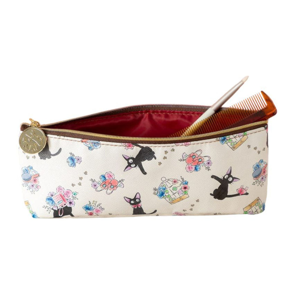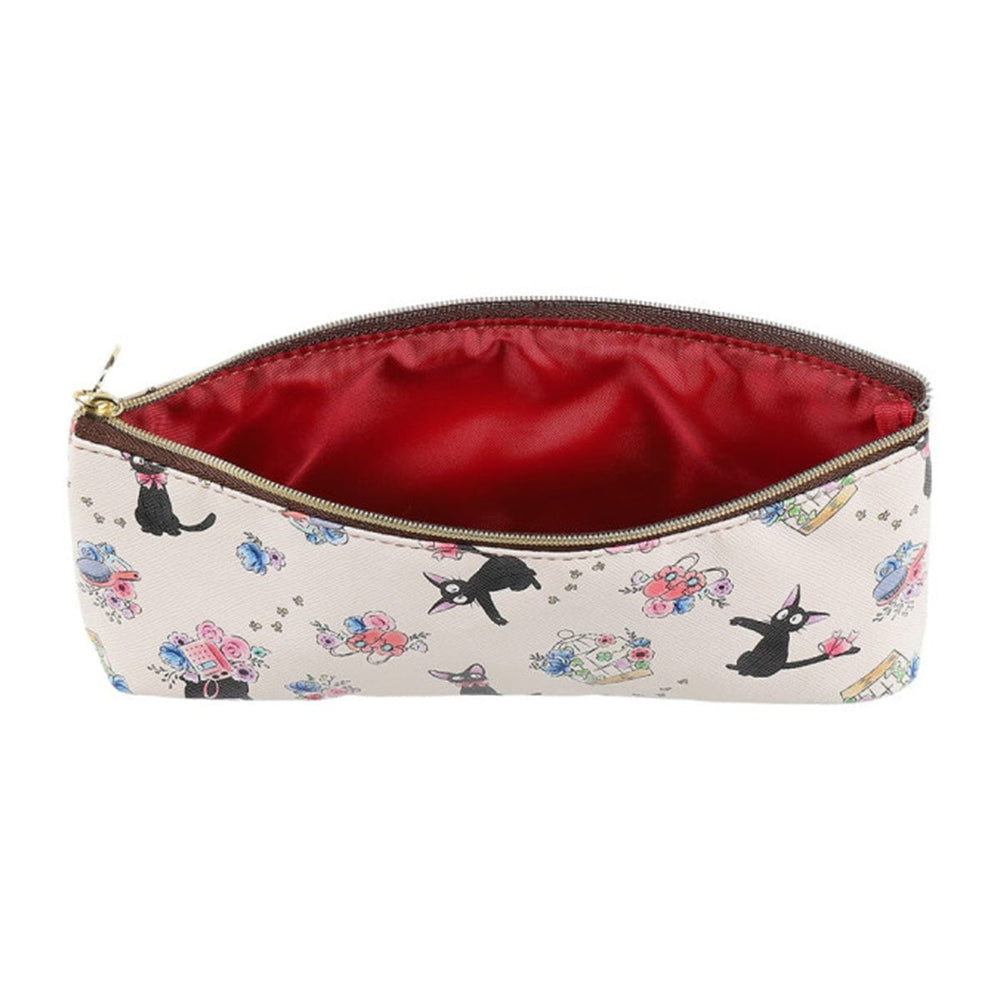 This lovely Ghibli Kiki's Delivery Service Watercolor Flower Slim Pouch features Kiki's companion, Jiji, intermixed with various elements from the film. This pouch is made primarily from synthetic leather, offering a luxurious feel and appearance. It's perfect for storing makeup brushes, IDs, cards, cash, pencils, and more. Use it for transporting items to work, home, or school.