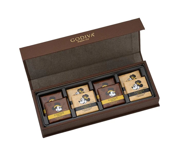 • The case contains 8 pieces of dark chocolate accented with hazelnut texture and Mickey and Minnie Mouse design motif wrapping.
