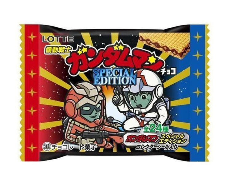 Enjoy these crispy chocolate wafers featuring a Gundam theme! Try to collect both packs and 1 out of 24 collectible stickers featuring characters from the anime!