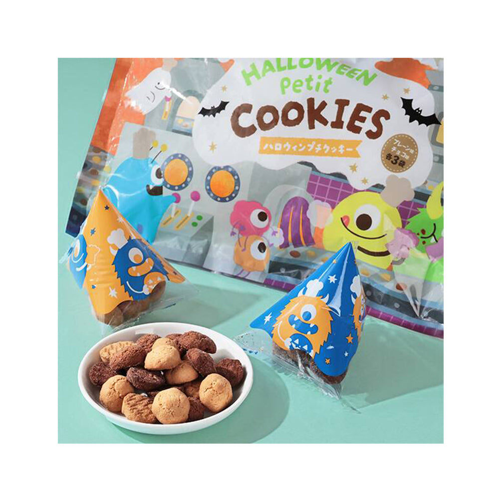This Halloween Petit Cookies Chocolate & Plain assortment is the ultimate spooky season treat. This pack includes six individual bags, each with a mixture of mini chocolate and plain cookies. These crispy cookies are a mouthwatering offering for trick-or-treaters or those with a sweet tooth. Their Halloween-inspired packaging adds a fun flair to the snacking experience!