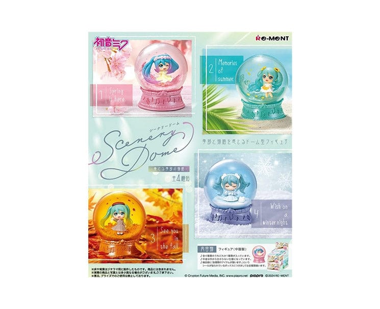 Catch Hatsune Miku in all the seasons - literally! This Series Scenery Dome Blind Box includes Hatsune in each season - winter through summer inside a cool dome. Four designs are available, each including fun seasonal decor, such as falling leaves in autumn and blooming flowers in spring. These mystery boxes are shipped at random, allowing you to unveil which design you receive!