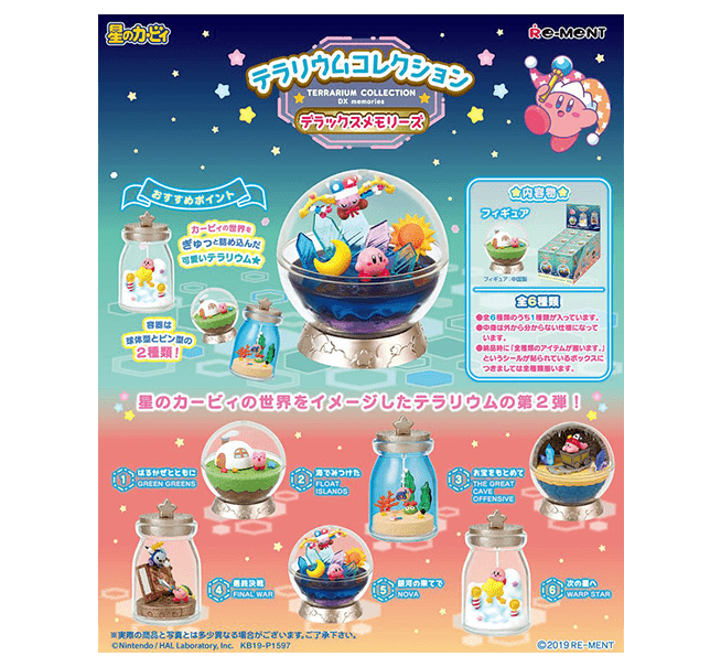 Blind Boxes are just like gachapon, in which it's a surprise as to what you'll get! Here we have terrariums featuring memorable moments from the Kirby games. Get 1 out of 6.