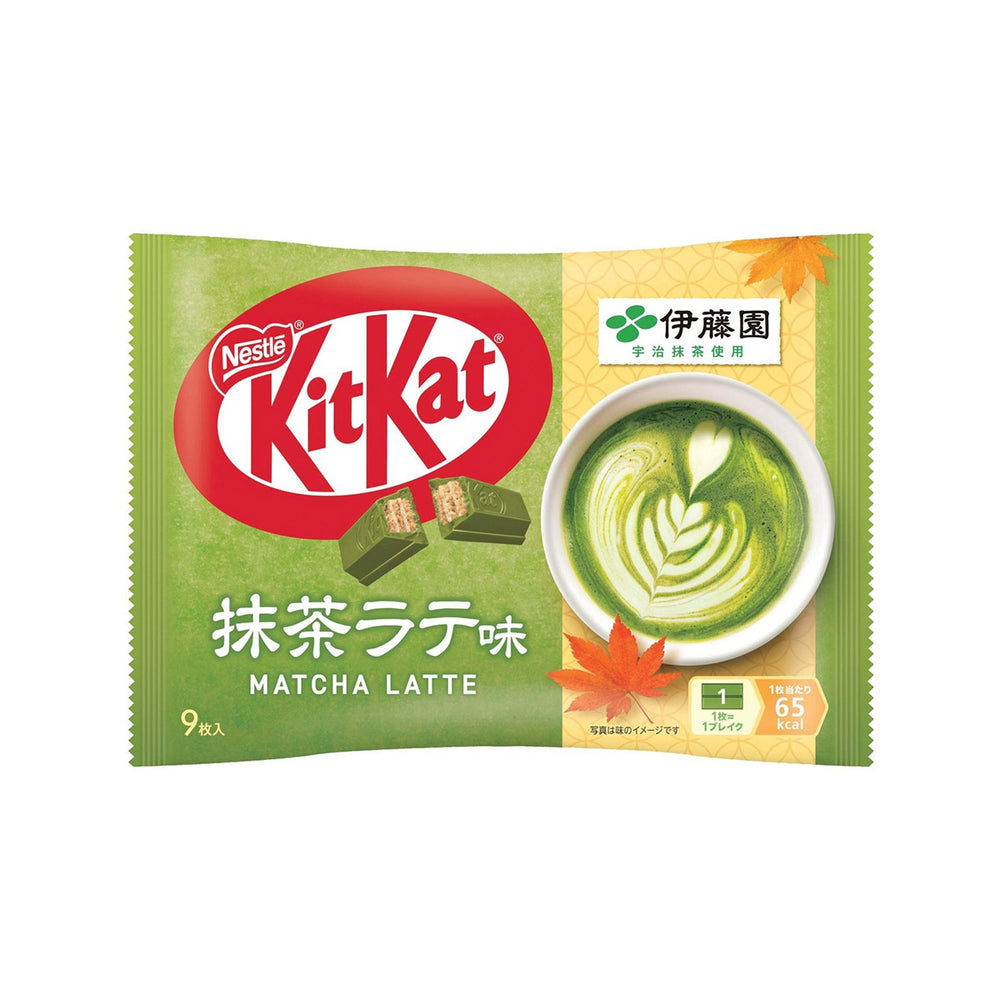 Enjoy the delicious taste of a Matcha Latte on the go with this Kit Kat Japan Itoen candy bar! Each bite reveals a bitter green tea flavor accented by a milky taste and a creamy chocolate coating. This Kit Kat pack includes nine individually wrapped mini chocolate bars; perfect for enjoying between errands, school, work, and chores!