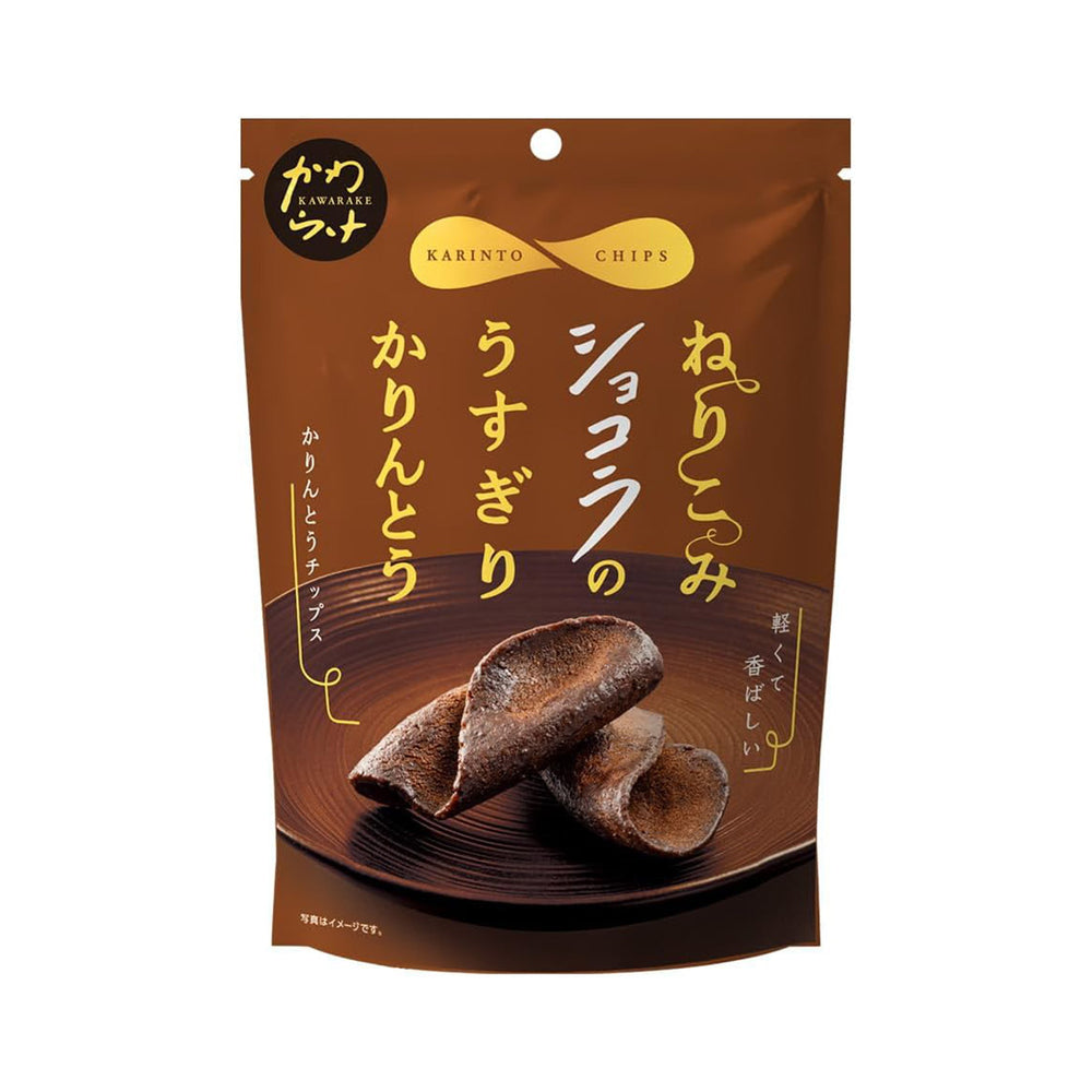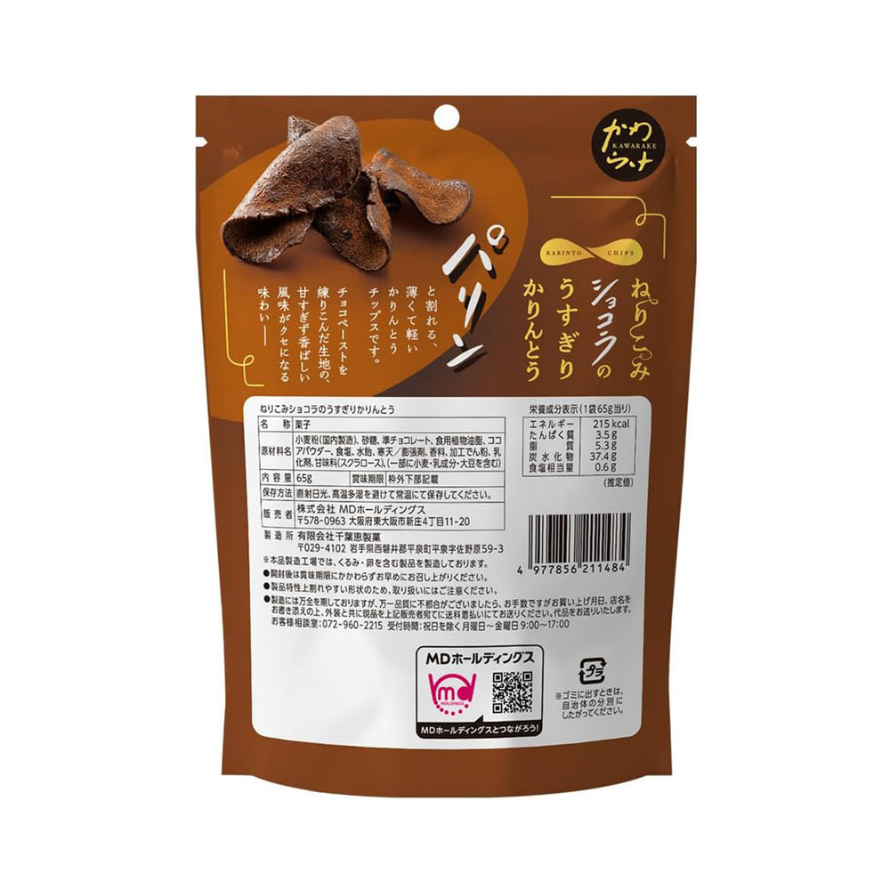 Karinto is a traditional Japanese treat made from fried wheat, featuring a lightly sweet taste. This MD Holdings Nerikomi Chocolat Rinse snack reimagines the traditional snack with a delicious semi-sweet chocolate coating. Enjoy the rich flavor of chocolate complemented by a crispy, chewy karinto chip.
