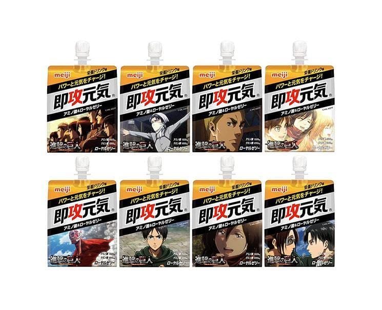 Meiji just made a collaboration with the anime Attack on Titan to offer you 8 different packages of jelly amino acid & royal jelly! These jelly packs are perfect to replenish your energy whenever you feel tired! Limited quantity nationwide! Volume: 180ml / 6.1 fl oz.