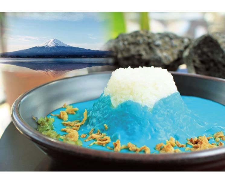 Mt Fuji is one of Japan's most iconic monuments, and here is a special blue spicy curry inspired by the big guy. So you can replicate wonderful views of Mt. Fuji from the comfort of your own home. It's made with peaches local to Fuefuki city in Yamanashi, where Mt. Fuji calls home.