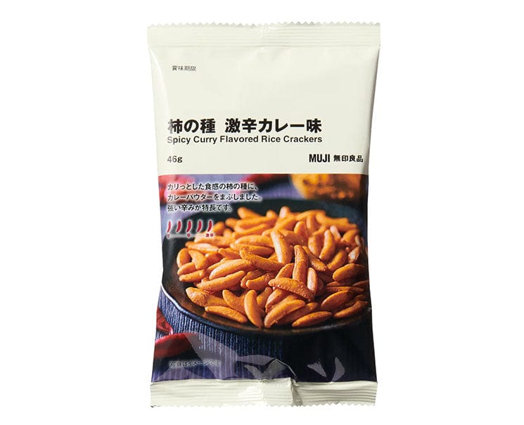 Spice up your snack time with MUJI's Spicy Curry Flavored Persimmon Seeds! These crunchy rice crackers deliver a bold and fiery curry taste, perfect for those who crave a unique and intense flavor experience