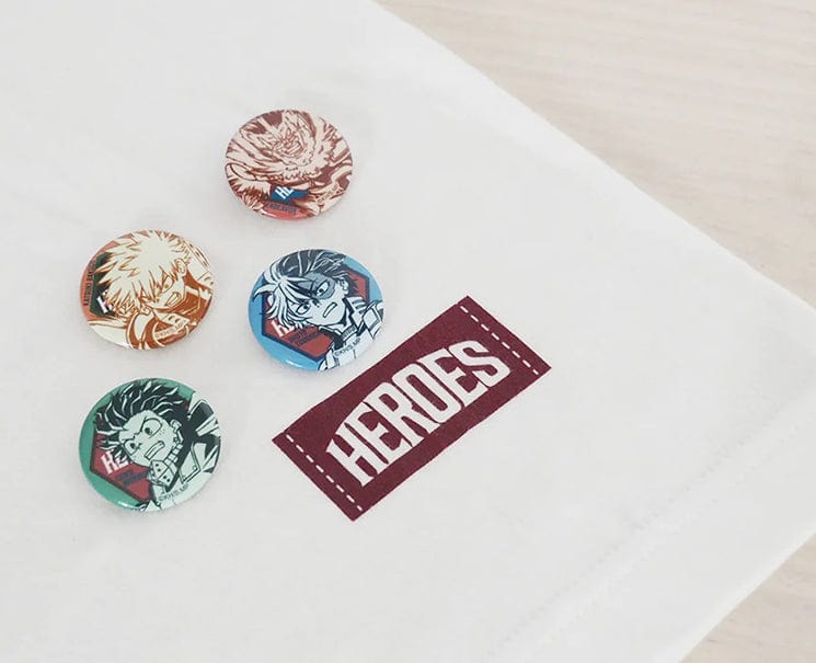 • Includes (4) tin character pin badges.