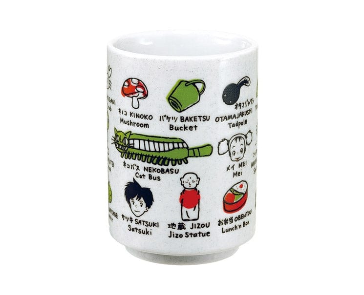 This charming teacup features beloved characters, buildings, and items from "My Neighbor Totoro," arranged in a delightful design. Each cup is meticulously handcrafted by skilled artisans, ensuring a warm and unique finish. The intentionally offset print style gives it a vintage feel, and as each piece is handmade, slight variations add to its uniqueness.
