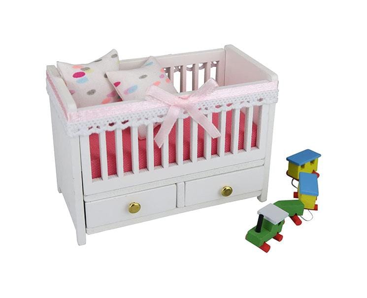 Here's a Nano Room DIY Craft: Baby Bed. Size: 3.2x2.3x1.3 inches. Build your dream house with highly-detailed and delicate crafting paper! English instructions not provided.