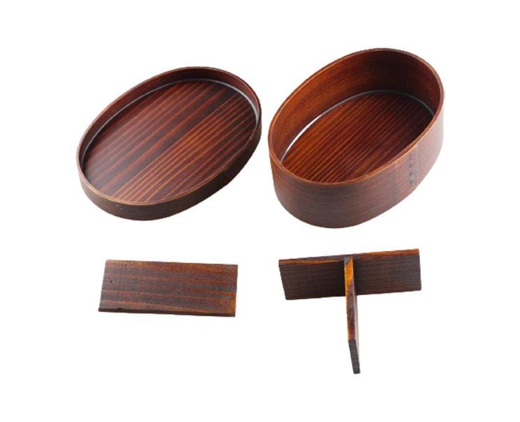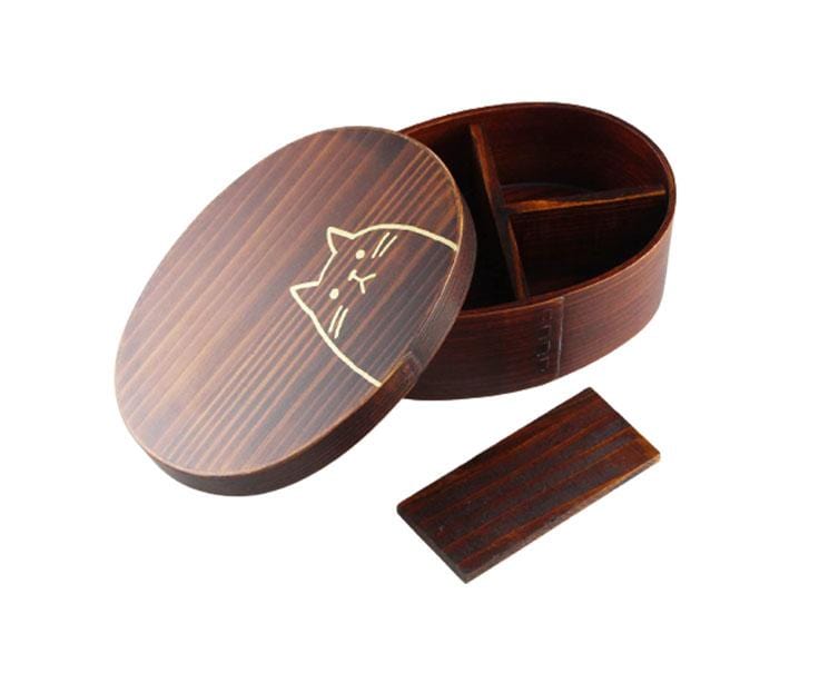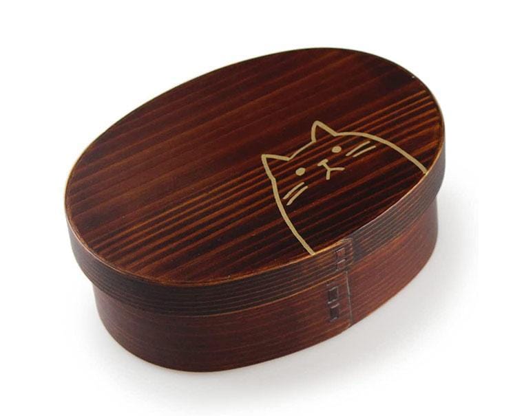 Here's a wood bento with a cute cat motif. Comes with separators.