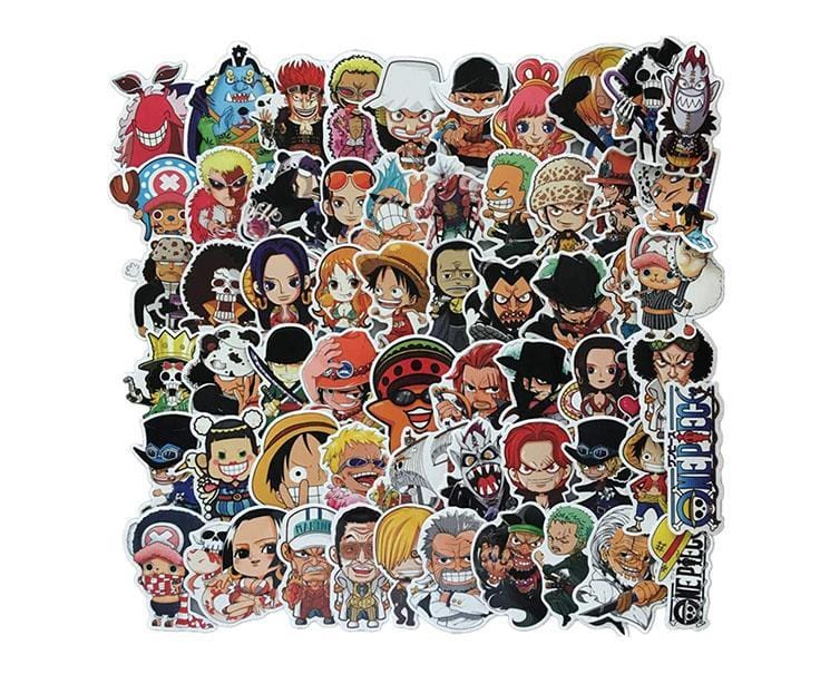 We have this huge collection of 50 stickers featuring tons of characters from One Piece. The stickers are PVC material so they can be used on many surfaces such suitcases, smartphones, laptops, guitars, skateboards, and son on.