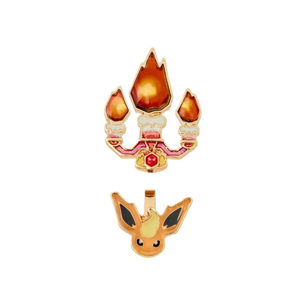 This Flareon has evolved into a glittering Pokemon after visiting the Paldea Region, known for terrastallizing Pokemon! With a sparkling terra star crown, these Pokemon Accessory Earrings are a fun addition to any outfit. Mix and match the removable Flareon with other Pokemon (sold separately) for a unique accessory.