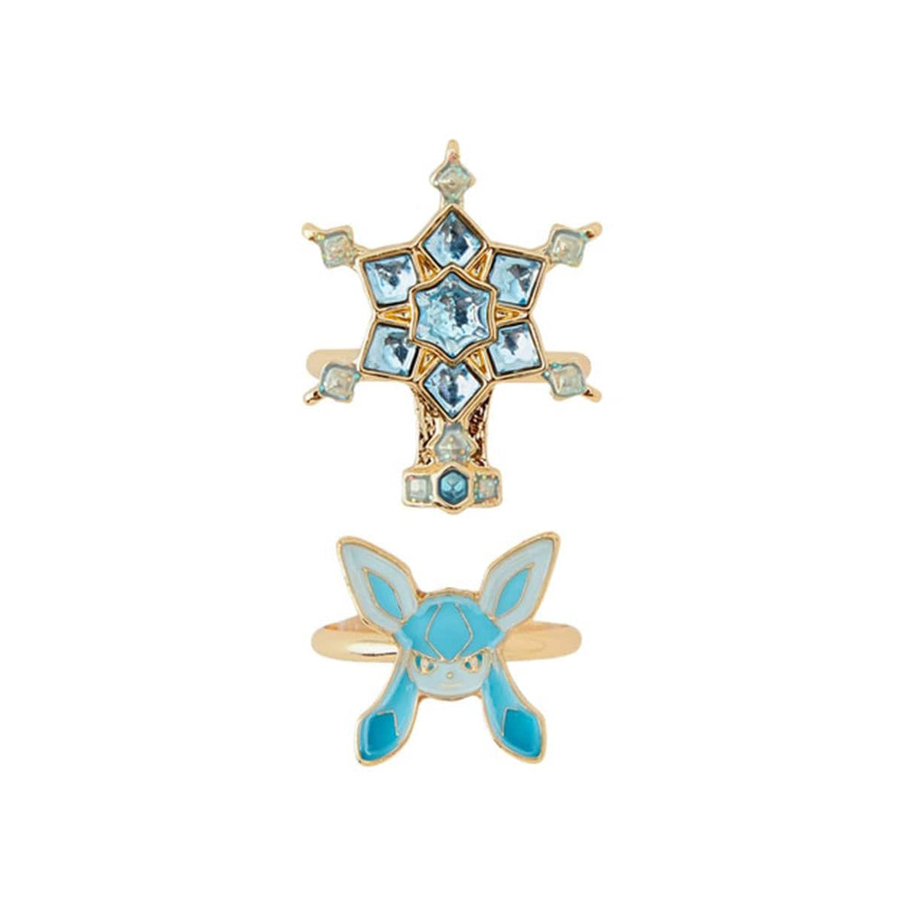 Shake off the warm-weather heat with this Pokemon Accessory Ring featuring chilly Glaceon! This ring is inspired by Pokemon in the Paldea Region who become terrastallized. With shimmery blue accents, this two-piece ring is a fun accessory to any outfit. Wear the rings separately or together, or mix and match them with other Pokemon rings. These rings fit sizes 9-13.