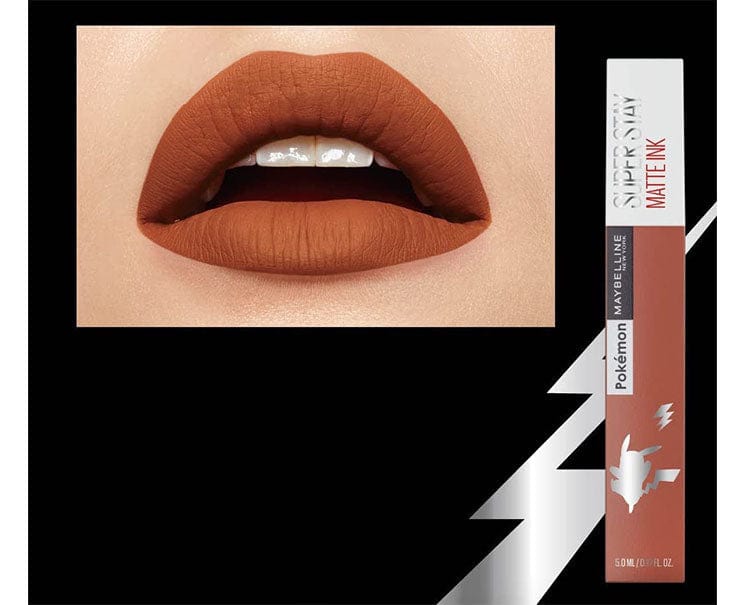 Pokemon Japan exclusive Maybelline makeup collaboration Pikachu super stay matte ink milky brown lip color! Get ready for the day with the power of Pikachu and have your lip color stay matte and perfect no matter what adventure you decide to take on! Color stays on for up to 16 hours, for the ultimate poke master!