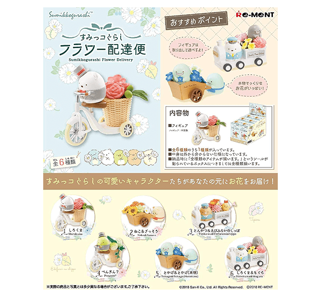 Blind Boxes are just like gachapon, in which it's a surprise as to what you'll get! Here we have mini figures showcasing the Sumikko doing their best to deliver flowers. Get 1 of 6.