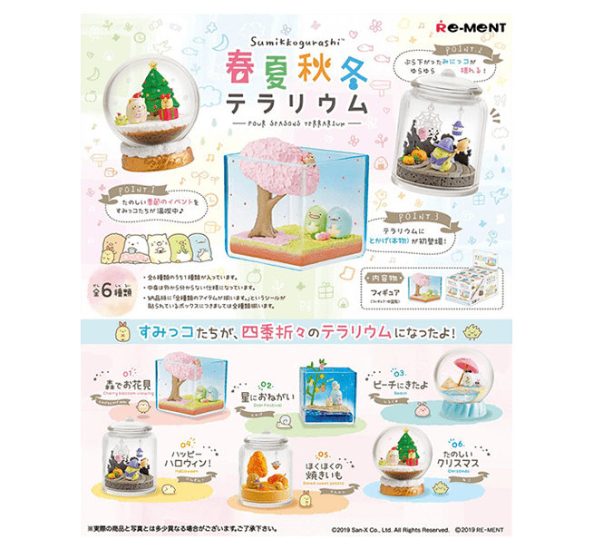 Blind Boxes are just like gachapon, in which it's a surprise as to what you'll get! Here we have terrariums featuring the Sumikko enjoying the four seasons. Get 1 of 6.