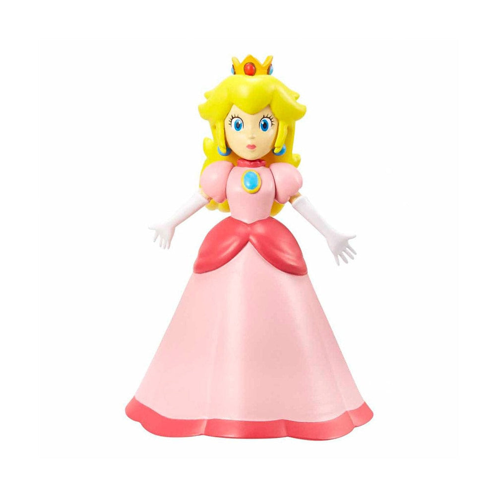 Complete your Super Mario Figure Collection with this Peach figurine. This model of Princess Peach features her characteristic outfit and surprised expression. She even has a movable head and arms, so you can pose her as you desire. Great as a gift for Super Mario fans!