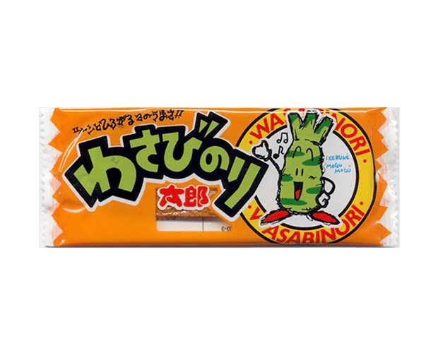 This is one of the most traditional Dagashies in Japan, which refers to classic, nostalgic and cheap snacks. This is a dried fish Dagashi featuring a wasabi and seaweed flavor.